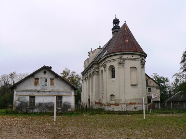 В середине XVIII века рядом с костелом была сооружена колокольня в форме триумфальной арки.