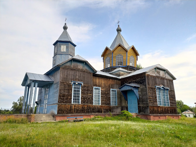 Деревянная церковь Святого Михаила в селе Максим на Черниговщине построена в XVIII веке. Это довольно большое деревянное здание с одним куполом и пристроенной колокольней.