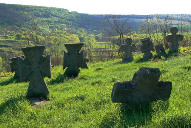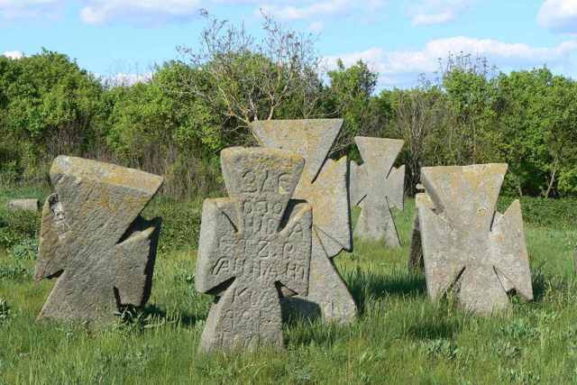 Здесь можно увидеть множество массивных каменных казацких крестов разнообразных форм. Они изготовлены из местного песчаника, большие залежи которого есть в окрестностях. Cреди надгробий выделяются казацкие кресты мальтийского типа с кругом посередине, кресты в виде "треф", еще более сложные по форме – с дополнительными поперечинами на перекладинах.