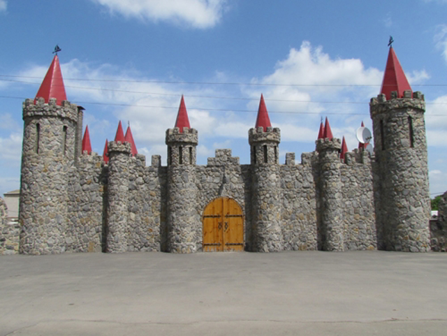 Акимовским замком называют современный жилой дом в центре Акимовки, стилизованный под средневековую крепость или сказочный замок.