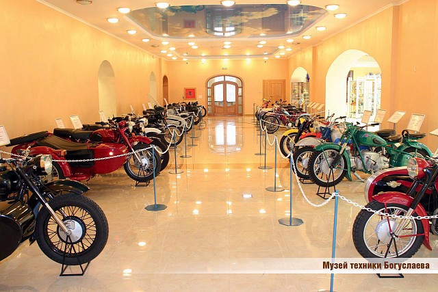 Поверхом вище розміщена експозиція 26 моделей ретро-мотоциклів, а також товарів народного споживання, що випускалися заводом: бензопили, мотоблоки, молочні ...