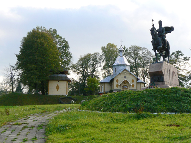 Рядом с церковью Флора и Лавра в 1992 году был установлен конный памятник гетману Петру Сагайдачному.
