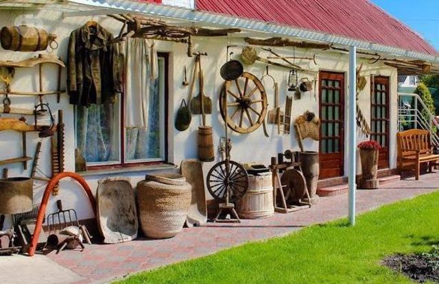 Тут можна побачити міні-музей просто неба: від будинку-мазанки з дахом з очерету до старовинної гармати. Практично всі експонати музею діють.