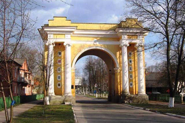 Символическая триумфальная арка возведена в 1787 году по случаю проезда через Новгород-Северский императрицы Екатерины II.