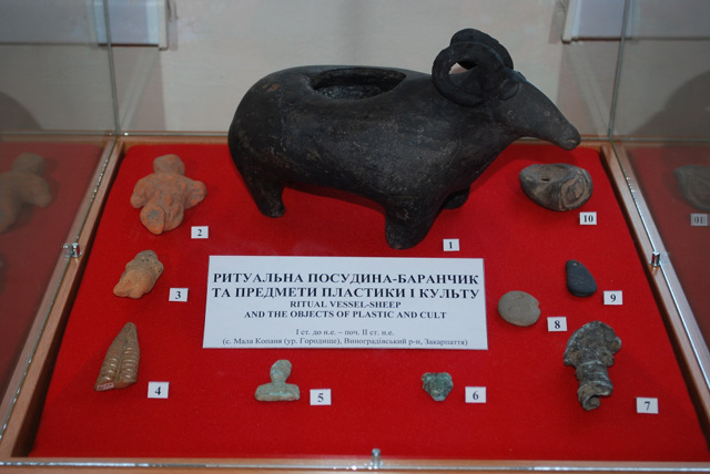 Найцікавіші експонати походять з роскопок дакійського городища поблизу села Мала Копаня, макет якого можна побачити в експозиції. Серед них зразки дакійської кераміки, знаряддя праці, зброя ...