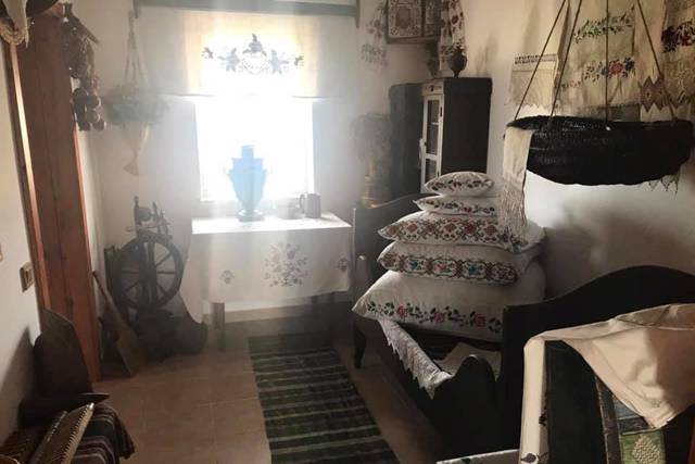 В помещении восстановленной сельской хаты обустроены пять экспозиционных залов, где собраны артефакты прошлого, исторические справки, документы разных лет. Представлены старинные вещи домашнего обихода, старые фотографии, необычные орудия труда, предметы быта и домашнего интерьера, оружие времен Второй мировой войны.