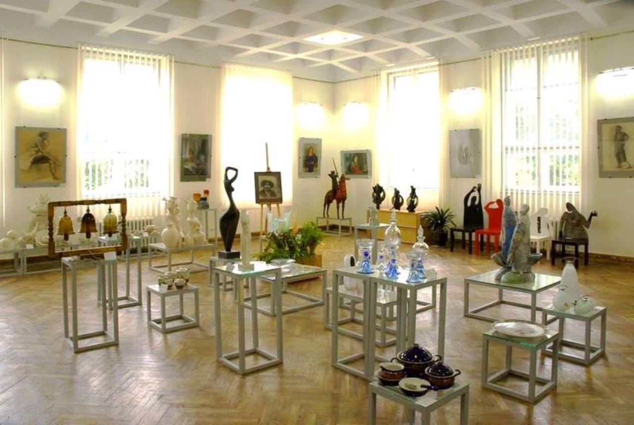Найціннішими експонатами є дипломні роботи відомих художників: декоративна таріль "Богдан Хмельницький" Софії Караффи-Корбут (1953 рік) та вхідні двері до музею роботи Семена Однопозова (1955 рік).