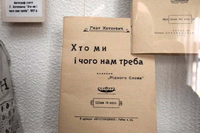 Экспозиция музея воспроизводит образ писателя, историка, искусствоведа. В ней представлены редкие документы, рукописи, письма, фотографии, книги, концертные афиши, музыкальные инструменты, ноты, прижизненные издания книг Хоткевича, переводы произведений европейских авторов на украинский язык. Постоянная выставка "Гнат Хоткевич – художник" представляет цикл его живописных работ, созданных в 1908-1909 годах на Гуцульщине.