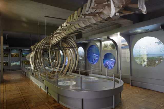 Настоящей изюминкой музея является центральный экспонат – самый большой музейный предмет – 26-метровый скелет гигантского кита-финвала, добытый китобоями Украины у берегов Антарктиды.