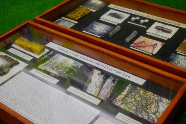 Экспозиция Конотопского музея леса рассказывает о флоре и фауне Сумской области. Представленные чучела некоторых местных животных, образцы древесины здешних пород, фото животных в природе, необычные находки лесоводов, декоративные панно работы местных мастеров.
