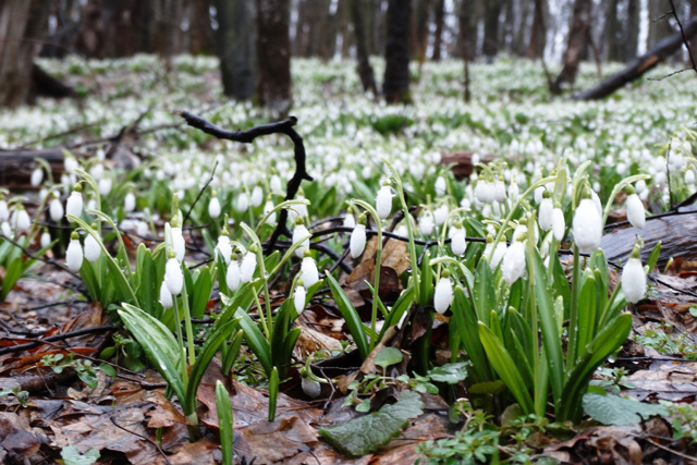 Наибольший массив подснежника складчатого в Холодном Яру растет на территории ботанического заказника "Белоснежного" в 1,5 километрах северо-восточнее Мотронинского монастыря. Эта поляна подснежников особенно популярна среди туристов во время цветения первоцветов в течение марта и в начале апреля.