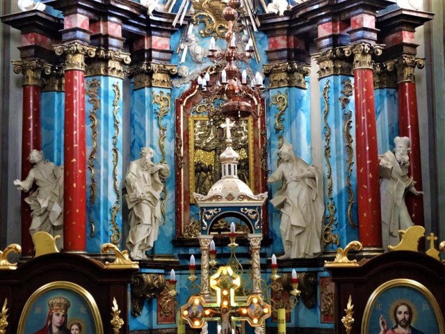 Над внутрішнім оформленням Успенського костелу кілька років працював видатний скульптор Іван Пінзель. Монументальна композиція з п'яти вівтарів включає образ Матері Божої з Немовлям Ісусом, постаті Святого Іоанна Євангеліста, Святого Йоахіма, Святої Анни, Святого Зазарія, Архангела Михаїла, Святого Іо ...