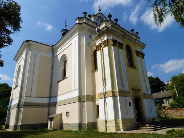 Католический костёл Успения Богородицы был построен в Бучаче под замковой горой неподалёку от ратуши на средства владельца города, каневского старосты Николая Василия Потоцкого, о чём свидетельствует его родовой герб Пилява на фронтоне. Надпись на портале гласит: "Из желания иметь в Пиляве Потоцких три креста, Дом кресту во славу Божию построил".