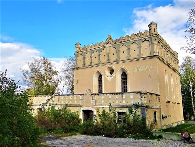 Оборонна синагога в готико-мавританському стилі знаходиться на пагорбі в найстарішій частині Гусятина.