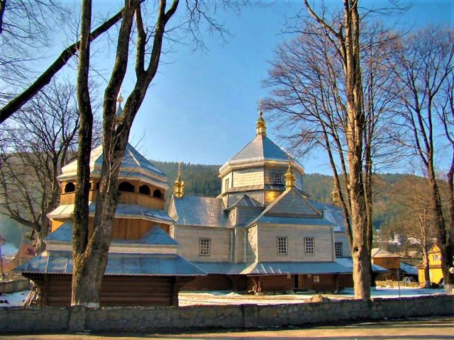 Деревянная церковь Пресвятой Троицы в гуцульском стиле построена в Микуличине в 1868 году.