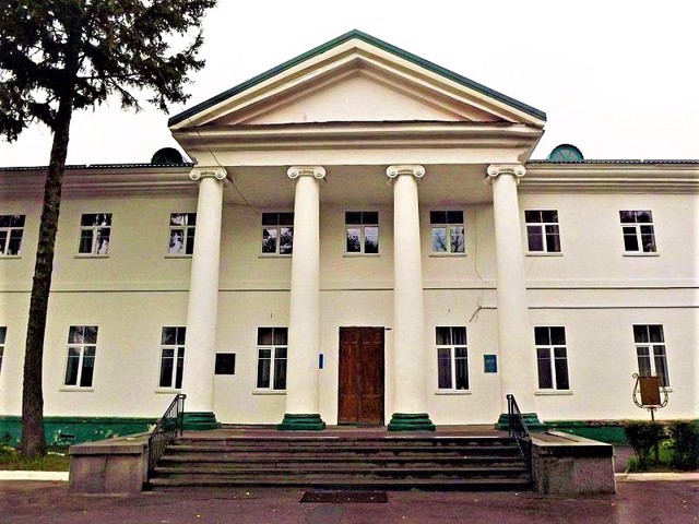 Двухэтажное здание в стиле классицизма построено в конце ХVIII века на берегу Роси к западу от Замковой горы. Главный фасад украшен четырехколонным портиком ионического ордера.