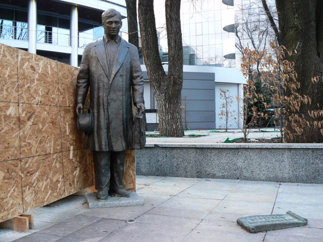 Памятник страховому агенту установлен в центре Донецка к 10-летию страховой компании "АСКА".