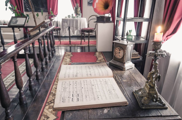 В трех залах музея представлены личные вещи композитора, его произведения, фрагмент интерьера дома его родителей.