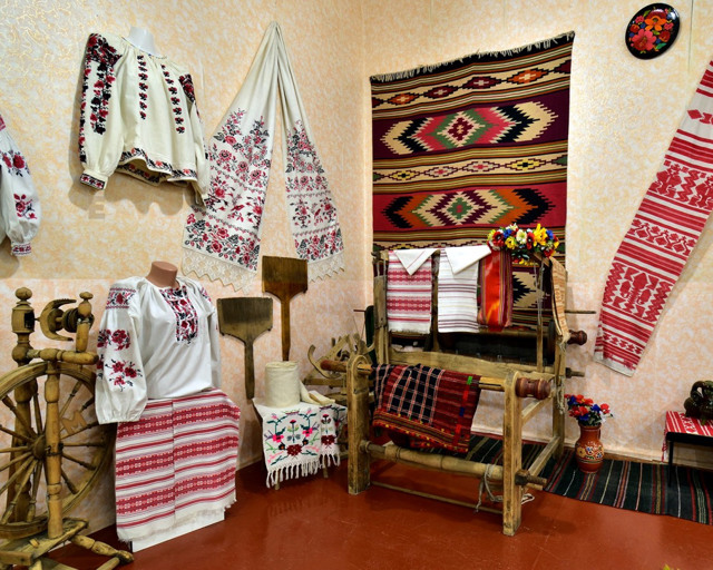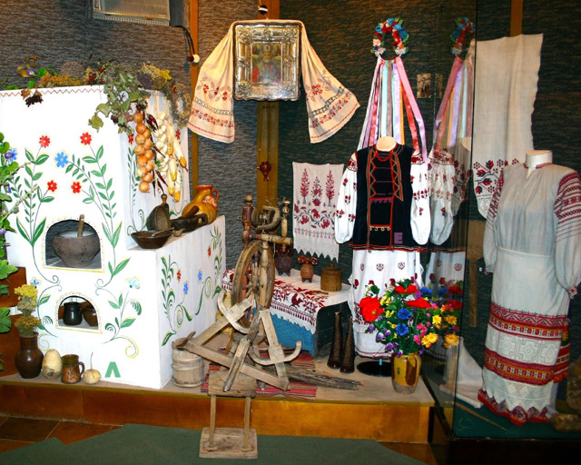 Цікава колекція українських народних костюмів та рушників.