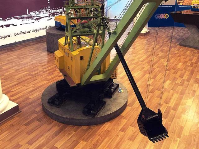 В холле музея представлены макеты ранней заводской техники, в том числе шагающих экскаваторов-драглайнов.