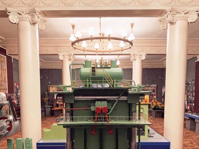 У холі музею представлені макети ранньої заводської техніки, зокрема крокуючих екскаваторів-драглайнів.
