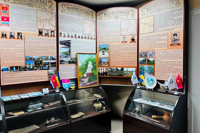 Экспозиция музея насчитывает около 9000 экспонатов основного и научно-вспомогательного фонда. Все они раскрывают историю Маловисковщины с древнейших времен до настоящего времени.