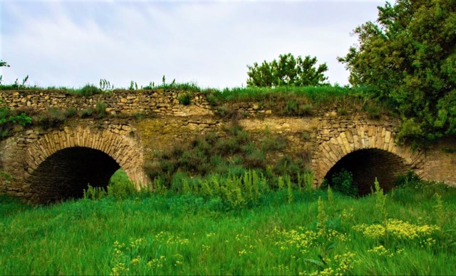 Арочний міст виконаний у стилі римських віадуків. Знаходиться прямо навпроти повороту на село Бургунка із траси Херсон-Берислав.
