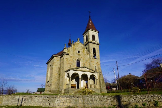 Храм у стилі модерну споруджено з каменю у формі хреста. Над бідевлею височить витончена дзвіниця з шатровим дахом. Вхід у костел прикрашає портик із колонами.