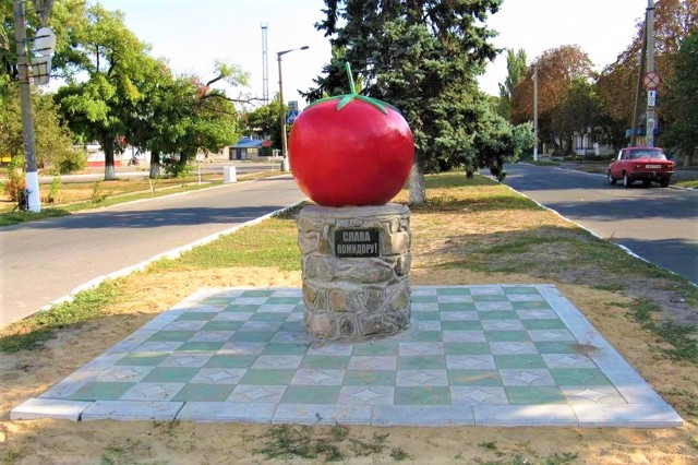Монумент "Слава помідору!" встановлений у 2009 році на центральній площі Кам'янки-Дніпровської.