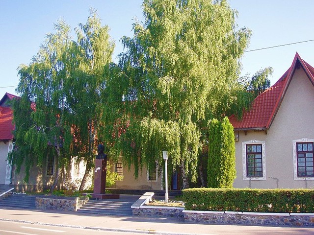 Перед будівлею музею встановлене погруддя Тараса Шевченка.