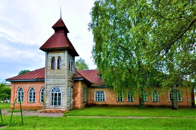 Школа у Кізлівці двокласна, одноповерхова, з характерною двоярусною вежею зі шпилем. Сластіонівський стиль також добре читається по трапецієподібних вікнах, шатрових дахах і цегляному декору. Будівля досі використовується за призначенням – це допоміжне приміщення Кізлівського ліцею.