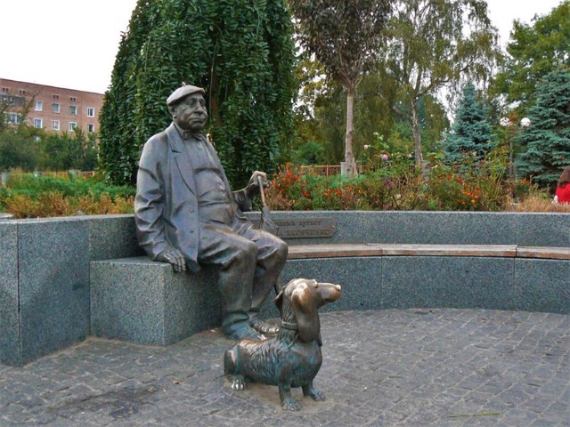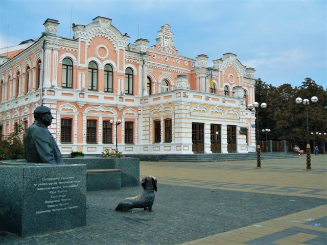 На площі перед будівлею театру Бродського в 2008 році встановлено пам'ятник знаменитому українському актору театру та кіно Миколі Яковченку, уродженцю Прилук.