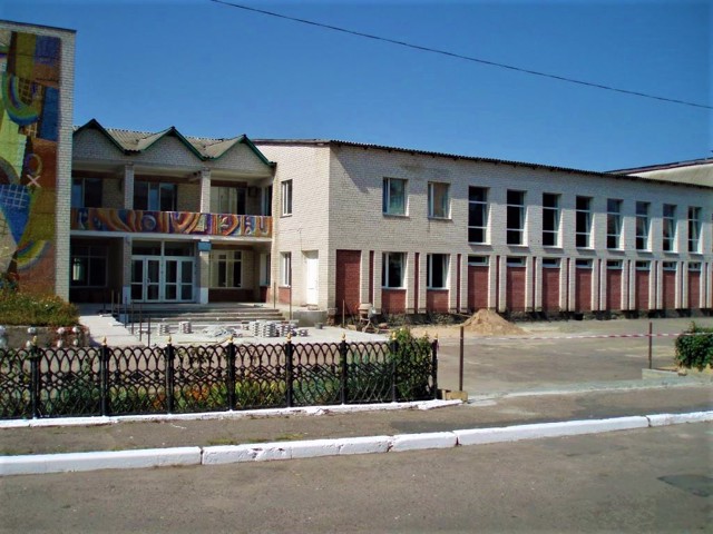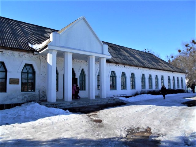 Варвинська школа має нехарактерний портик із трикутним фронтоном на чотирьох колонах - результат пізнішої перебудови та розширення.