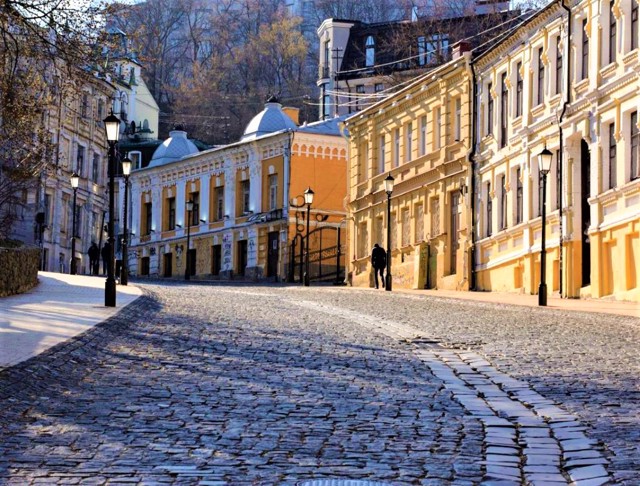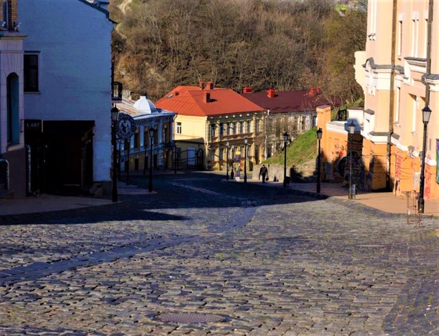 Мощена грубим каменем дорога круто звивається між старими одно-двоповерховими будинками. Це колоритне місце, що зберігає дух старого Києва, уподобане художниками та торговцями сувенірами, тут завжди багато туристів.