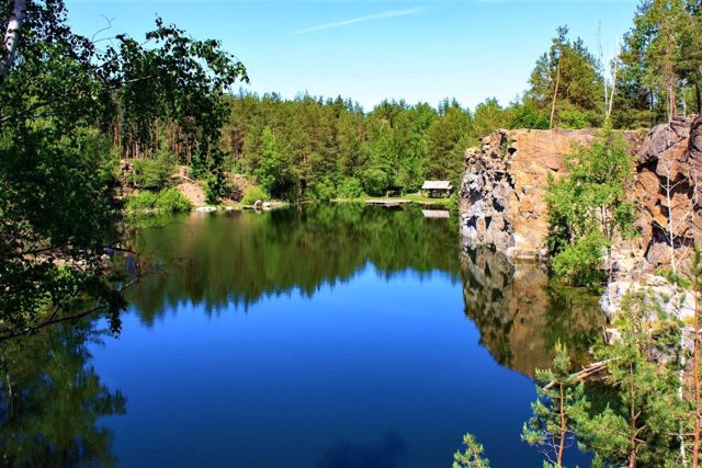 Скелясті береги озера заввишки до 10 метрів, порослі соснами та березами, нагадують карельські краєвиди. Вода має незвичайний бірюзовий відтінок. Вертикальні стіни кар'єру з вираженим рельєфом приваблюють альпіністів та любителів екстриму.
