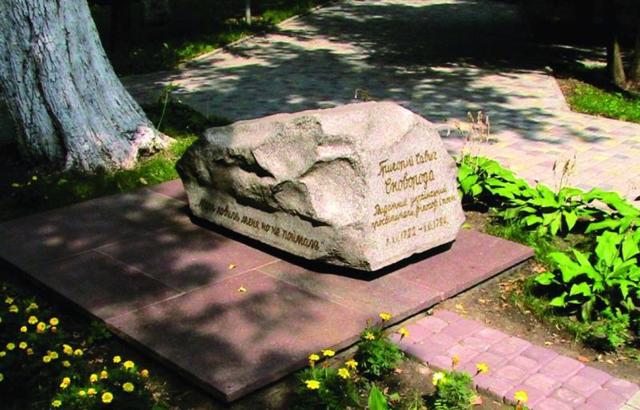 Неподалік садибного будинку у сквері знаходиться могила Григорія Сковороди. На стилізованому під придорожній камінь надгробку (1972 рік, скульптори Дмитро Сова, Любов Жуковська) висічено лаконічну та напрочуд ємну, гідну видатного філософа авторську епітафію: "Світ ловив мене, але не спіймав". Біля входу в сквер встановлено скромний пам'ятник Григорію Сковороді (1972 рік., скульптор Іван Кавалерідзе, архітектор Василь Гнєзділов).