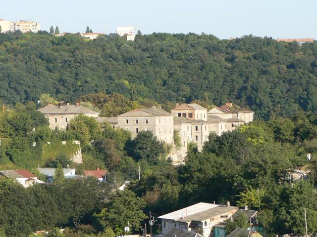Великий комплекс будівель казарм Кам'янець-Подільської фортеці особливо ефектно виглядає з протилежного боку каньйону Смотрича – з пішохідного мосту чи від Покровської церкви, що у дендропарку.