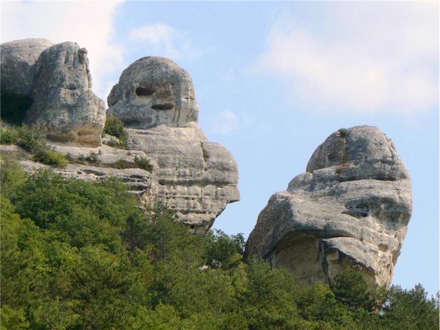 Природні сфінкси Каралезької долини – незвичайні кам'яні фігури, результат вивітрювання вапняку на гребені лісистого пагорба Узун-Тарла.