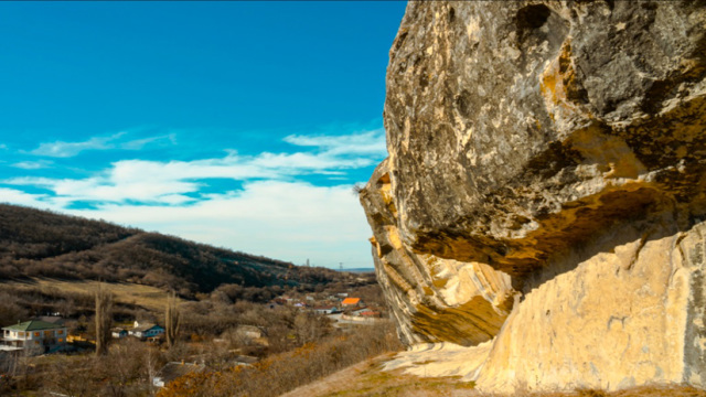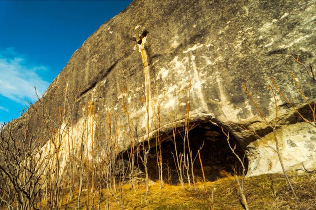 Знаходиться біля підніжжя скельного урвища на річці Бодрак, на південно-східній околиці села Скалисте.