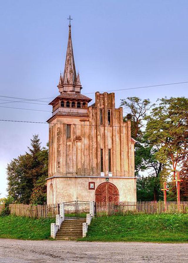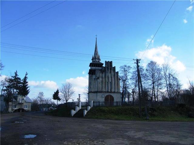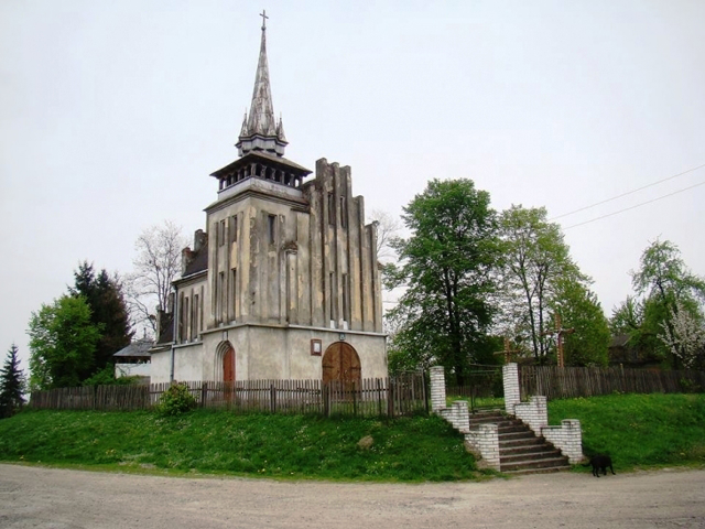 Храм у неоготичному стилі за проєктом архітектора Вавжинця Дайчака збудований у 1938 році. Конструкція костелу прикрашена великою кількістю арок, виступами, великими і маленькими шпилями. Храм прикрашають дерев’яні арочні двері в дусі середньовіччя, вузькі прямокутні віконні прорізи, характерні для оборонних споруд.