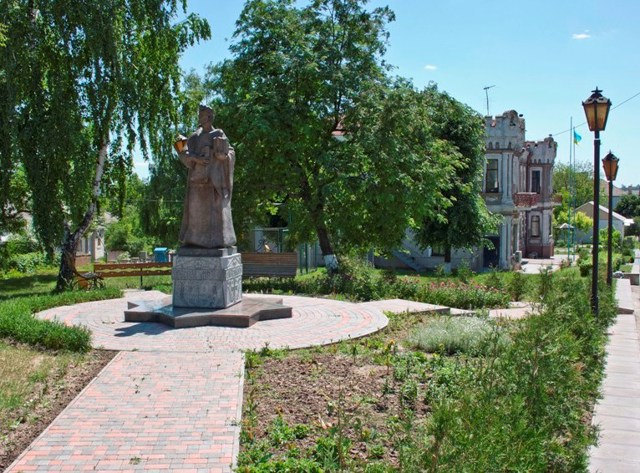 В 2009 році у сквері поруч із ним встановлено пам'ятник князю Ярославу Мудрому, засновнику Богуслава. Скульптура бронзова, висота - 2,6 метрів. На гранітному постаменті відтворено орнамент саркофагу Ярослава Мудрого, який зберігається у Софії Київській.