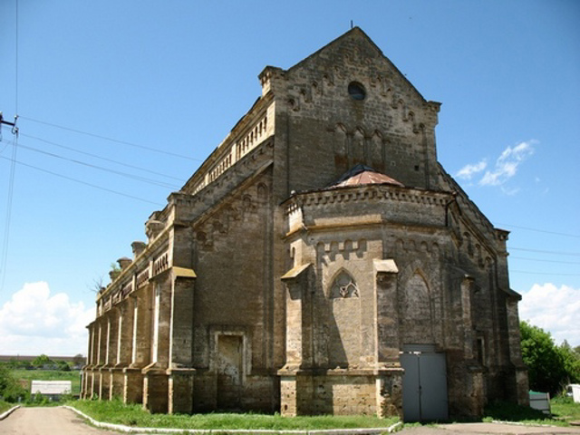 Перший католицький храм, споруджений у Степовому в 1820-1830 роках, був зроблений з вапняку і соломи. Новий Петропавлівський костел у неоготичному стилі був збудований із міцного черепашника.