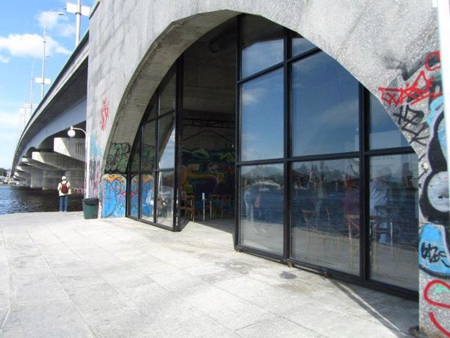 Галерея розміщена під арками мосту, конструкції якого розписані яскравими графіті.