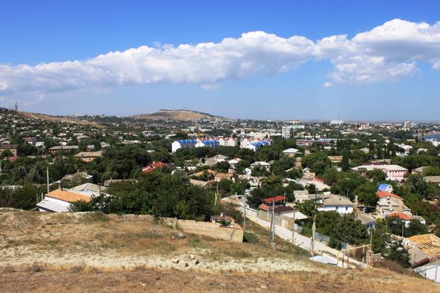 Оглядовий майданчик на горі Мітрідат відкритий до Дня міста в 2012 році. Звідси відкривається вид на всю затоку Феодосії і більшу частину міста. Прямо під горою - ц ...
