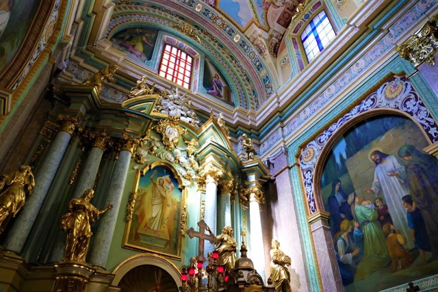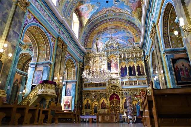 В інтер'єрі катедри – великий п'ятиярусний іконостас, виконаний відомими українськими художниками Модестом Сосенком, Юліушем Макарівським та Антіном Монастирським.
