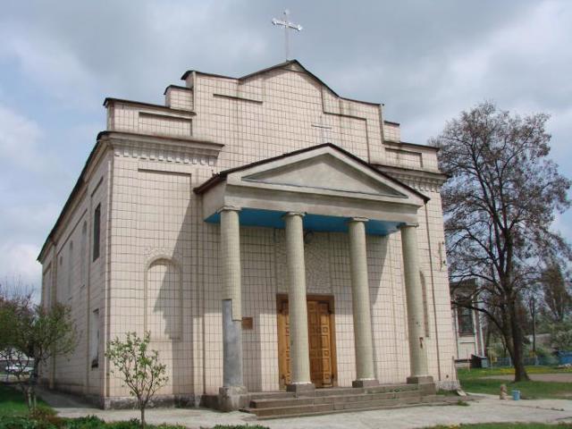 Перший дерев'яний католицький костел був збудований у місті в 1784 році коштом Станіслава Кордиша. В 1869 році святиня згоріла, і в 1884 році на її місці стараннями княгині Цецилії Радзивілл було збудовано новий костел у стилі класицизму.