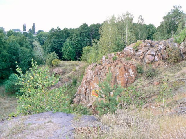 Виступ граніту на правому березі річки Уж на північно-західній околиці Коростеня відомо як "Червона гірка" або "Городище Мала".