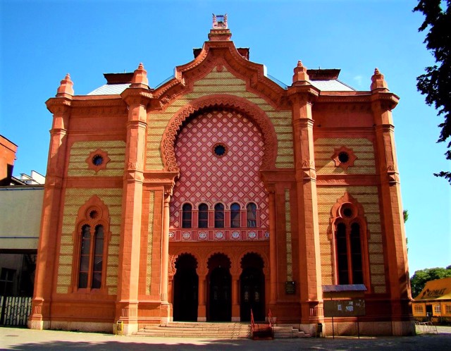 Синагога в Ужгороді збудована в 1904 році в неомавританському стилі за проєктом архітекторів Дюли Паппа та Ференца Саболча.