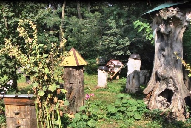 У дворі музею бджільництва представлені різні види та конструкції вуликів – від колодних до рамкових. У спеціальному прозорому оглядовому вулику можна побачити, як живуть та працюють бджоли.