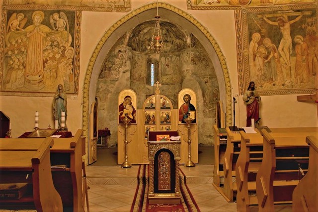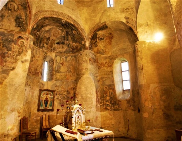 Всередині Горянської ротонди збереглися фрески, створені в 1360-1370 роках італійськими майстрами школи Джотто. На східній стіні нефа знаходяться розписи XV століття, виконані в техніці "саль секко" в манері тірольської та чеської живописних шкіл.